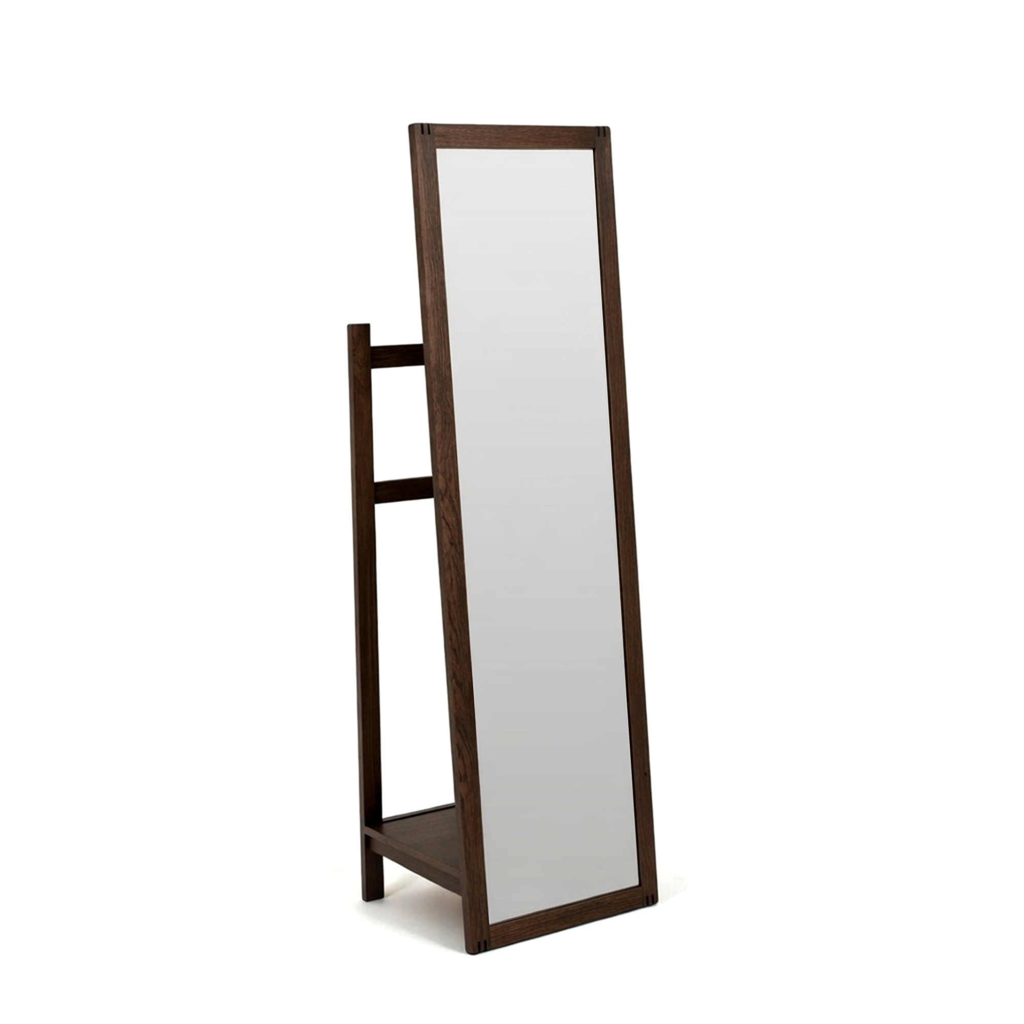 Geniş ayna yüzeyi mekânı daha ferah ve aydınlık gösterirken, ayaklı kullanımda yer alan askı detayı günlük kıyafetler, çanta veya aksesuarlar için işlevsel bir çözüm sunar. Duvara asıldığında ise minimal ve yalın bir görünüm elde edilir.