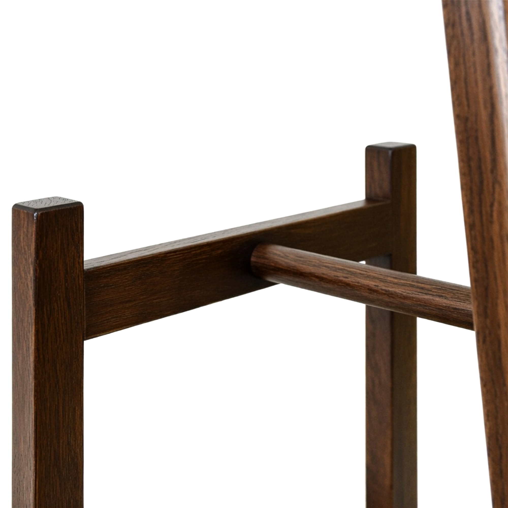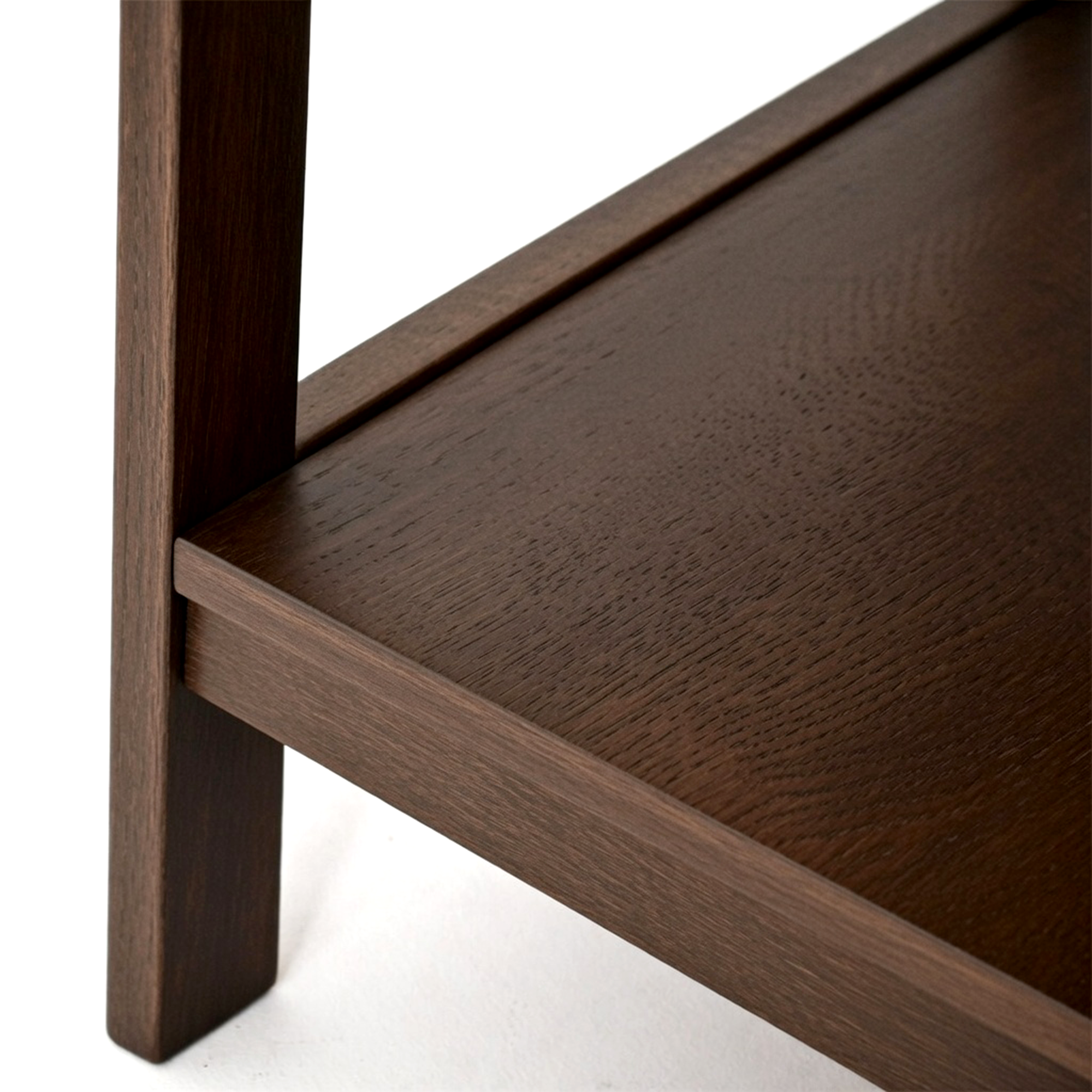 Doğal koyu meşe dokusu, ahşabın sıcak karakterini mekâna taşırken sade formu ile modern ve zamansız bir görünüm sunar. Yatak odası, antre veya giyinme alanlarında hem estetik hem de pratik bir kullanım sağlar.