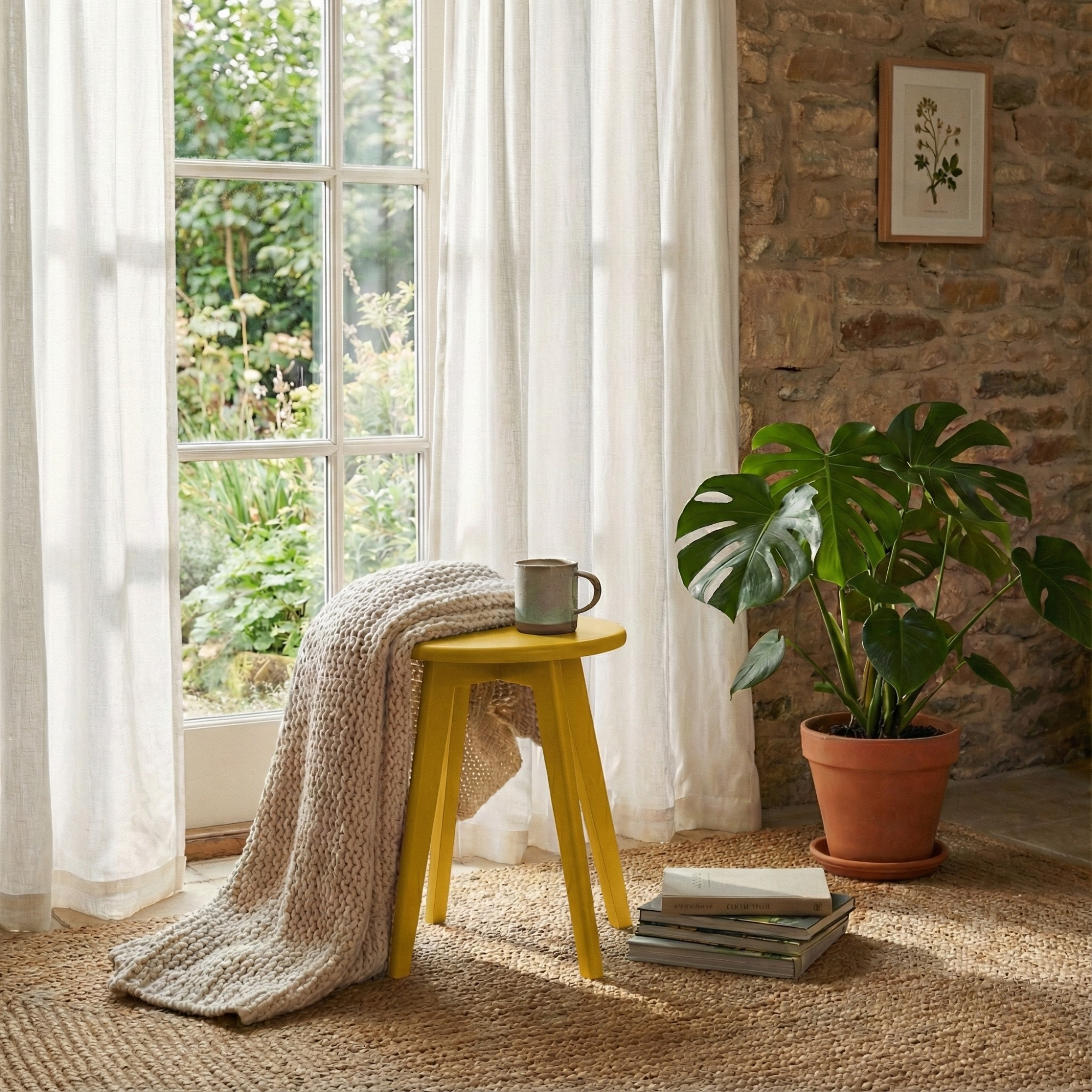 Dört noktada yere sağlam basan çapraz ayak yapısı, hem görsel denge hem de yapısal sağlamlık sunar. Kompakt ölçüleriyle ister bir oturma çözümü, ister yan sehpa, isterseniz dekoratif tamamlayıcı olarak çok yönlü bir kullanım alanı yaratır.