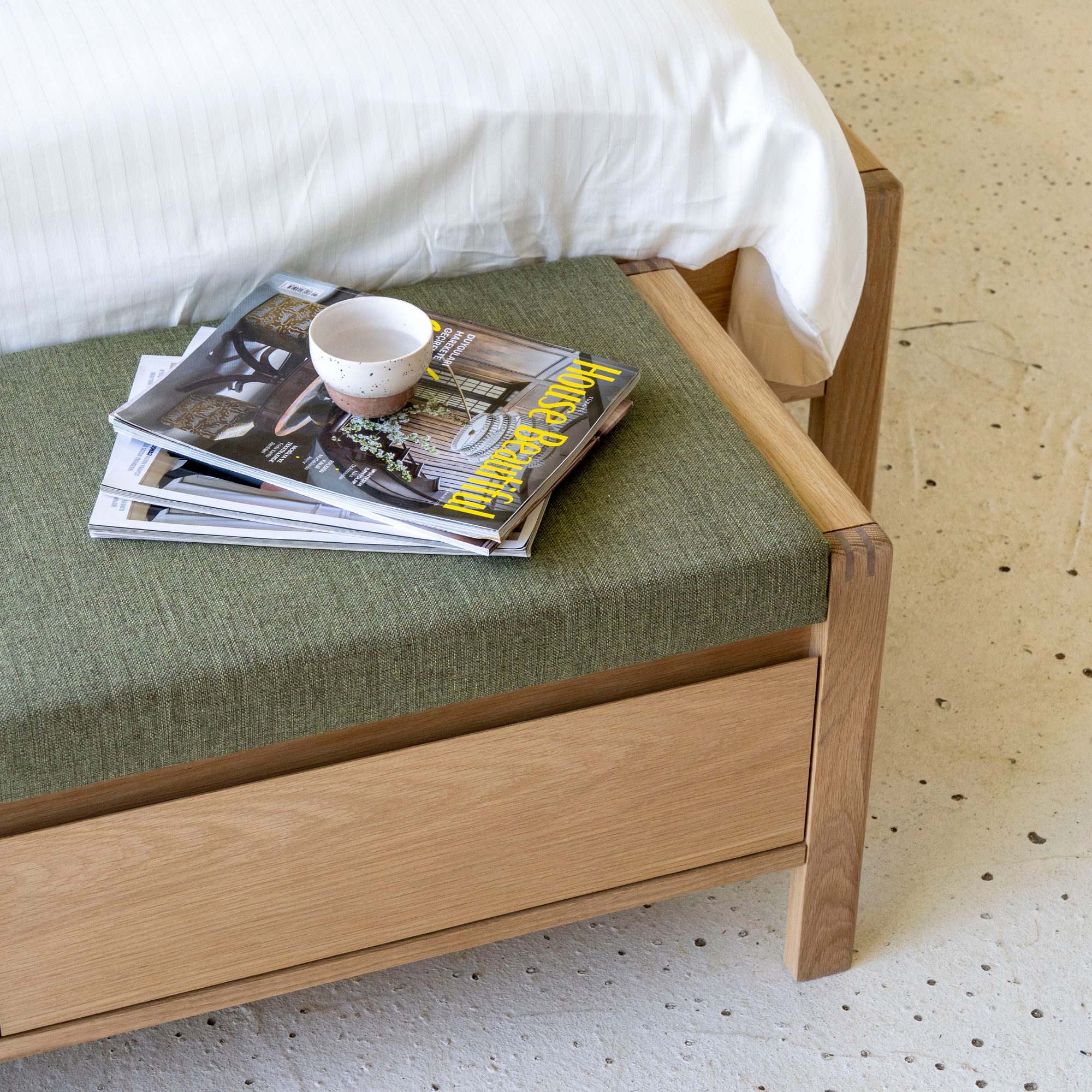 Yumuşak dokulu döşemesiyle her dokunuşta sıcaklık hissi uyandıran bu karyola bankı, sağlam yapısı sayesinde uzun yıllar güvenle kullanılabilir.