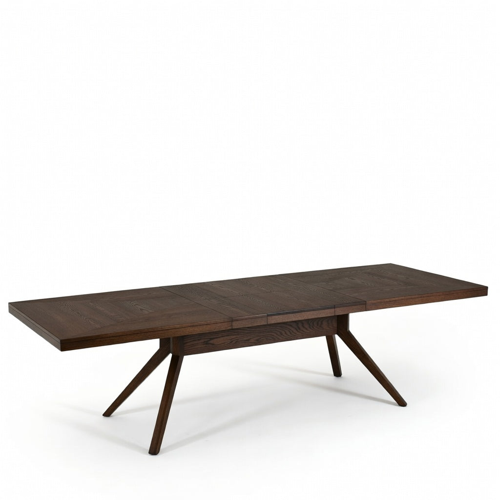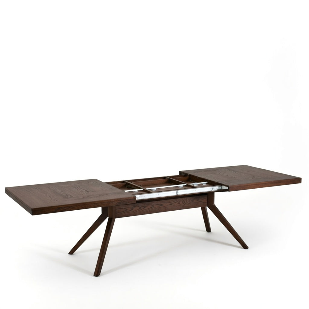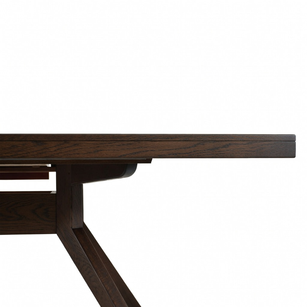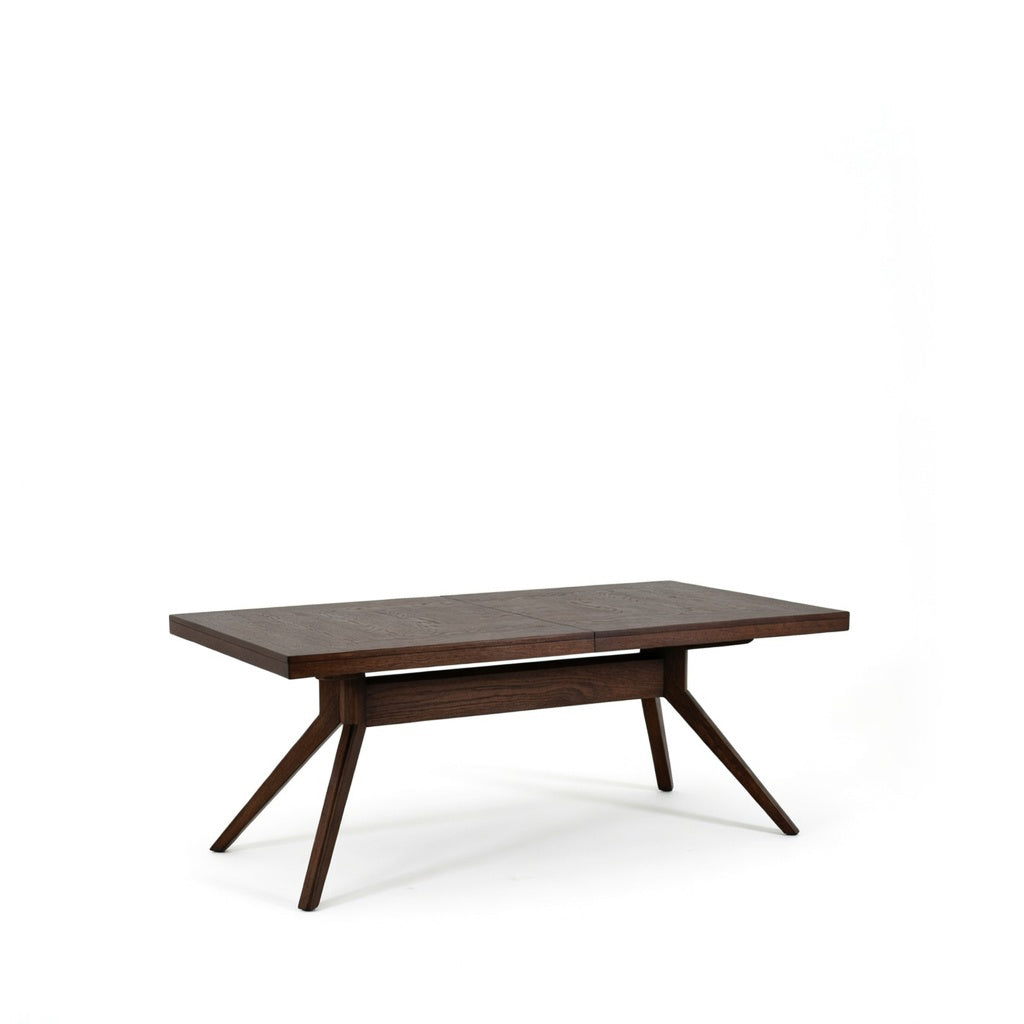 Koyu meşe yüzeyi, doğanın yalınlığını ve zarafetini modern çizgilerle buluştururken, dinamik ayak formu ve üç aşamalı açılabilir yapısı tam esneklik sunar.