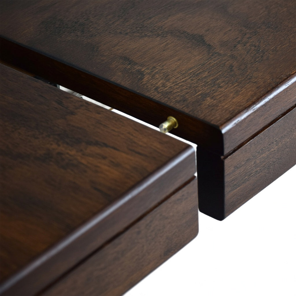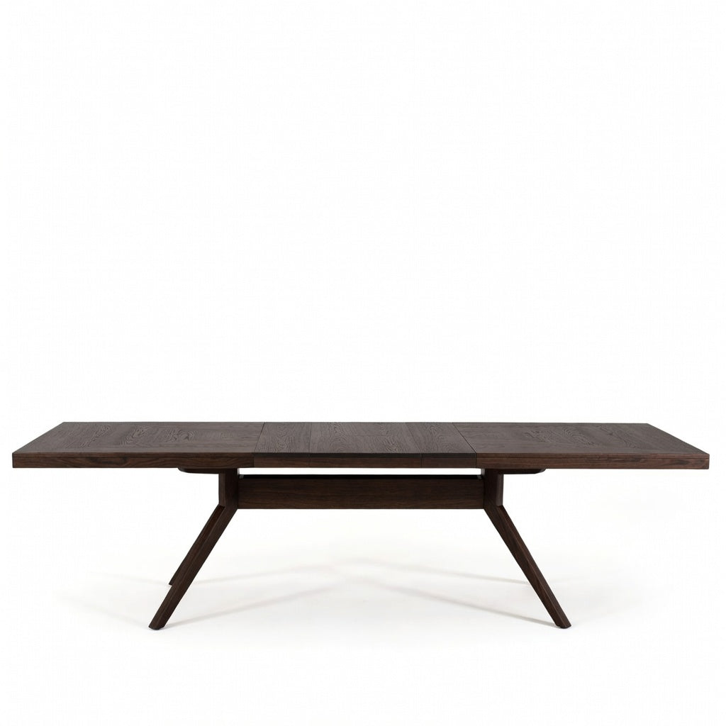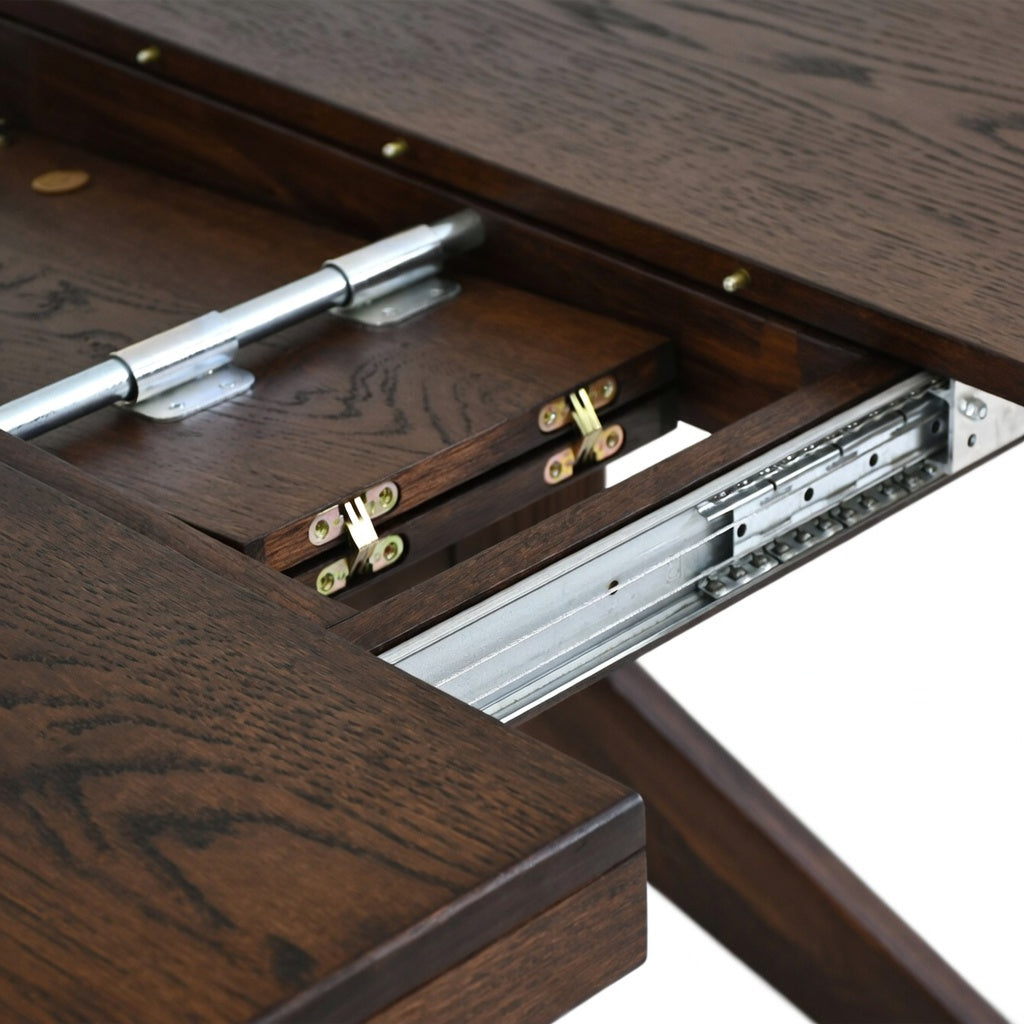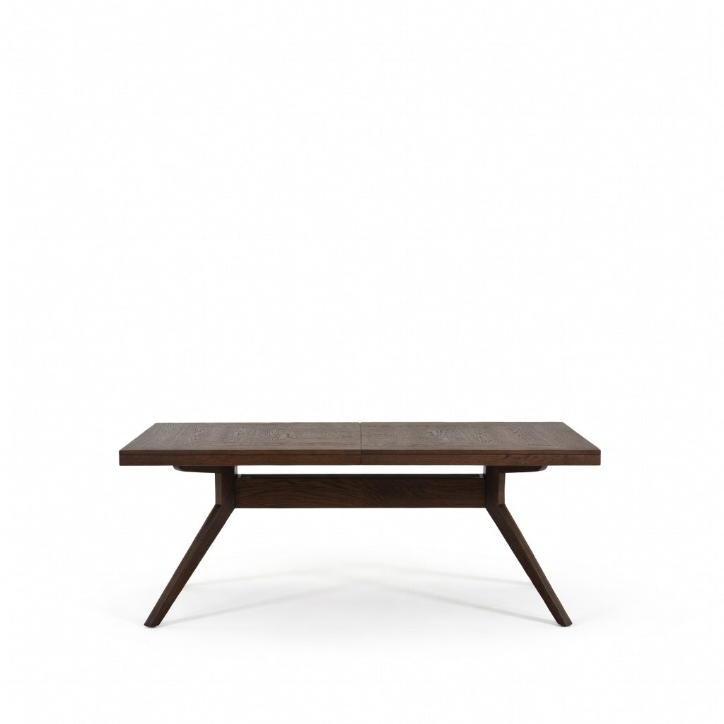 Koyu meşe yüzeyi, doğanın yalınlığını ve zarafetini modern çizgilerle buluştururken, dinamik ayak formu ve üç aşamalı açılabilir yapısı tam esneklik sunar.