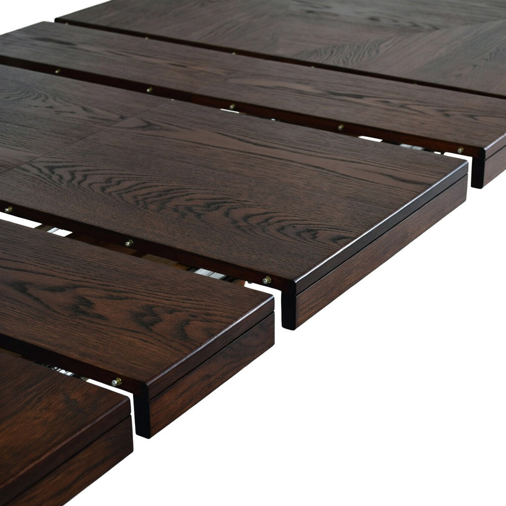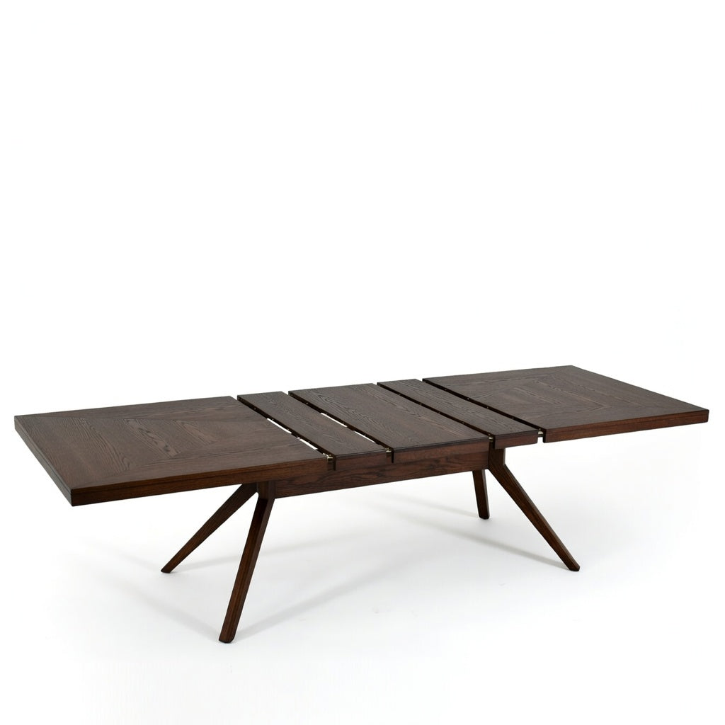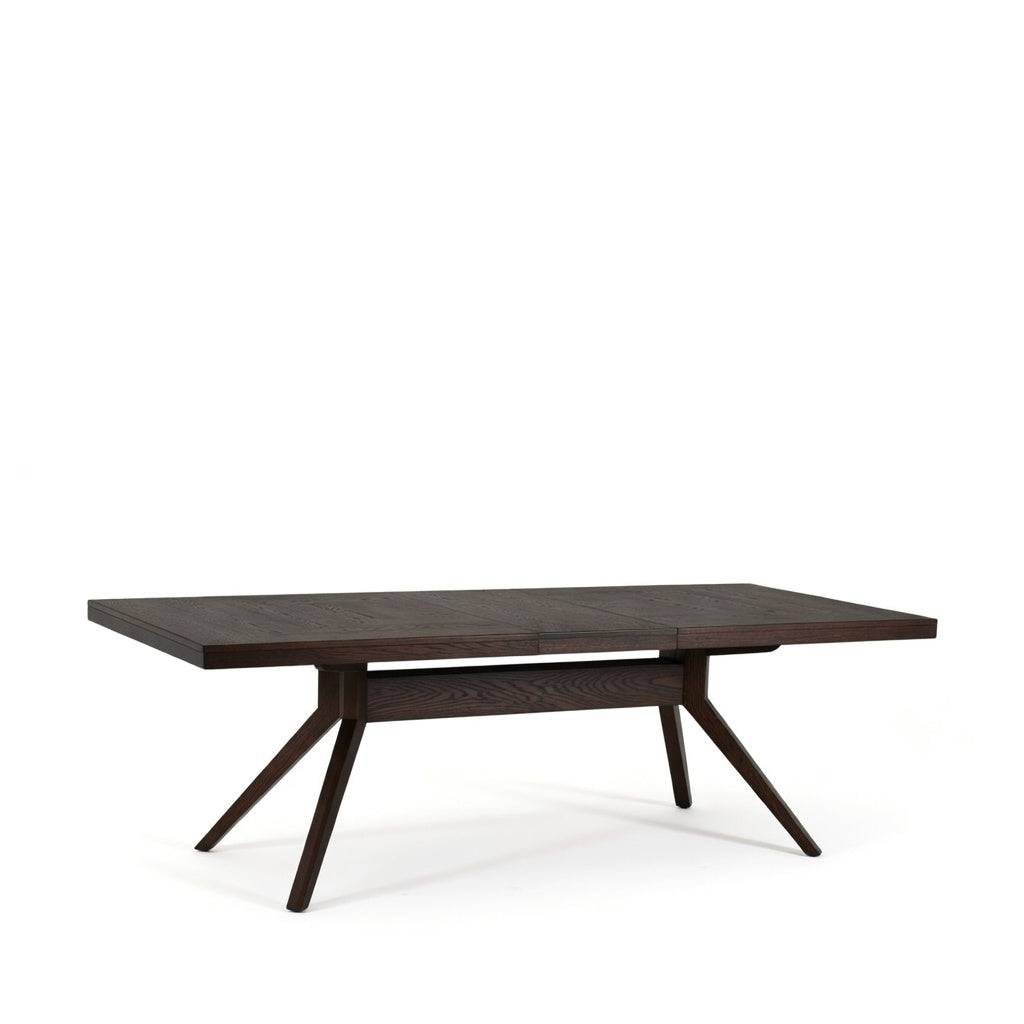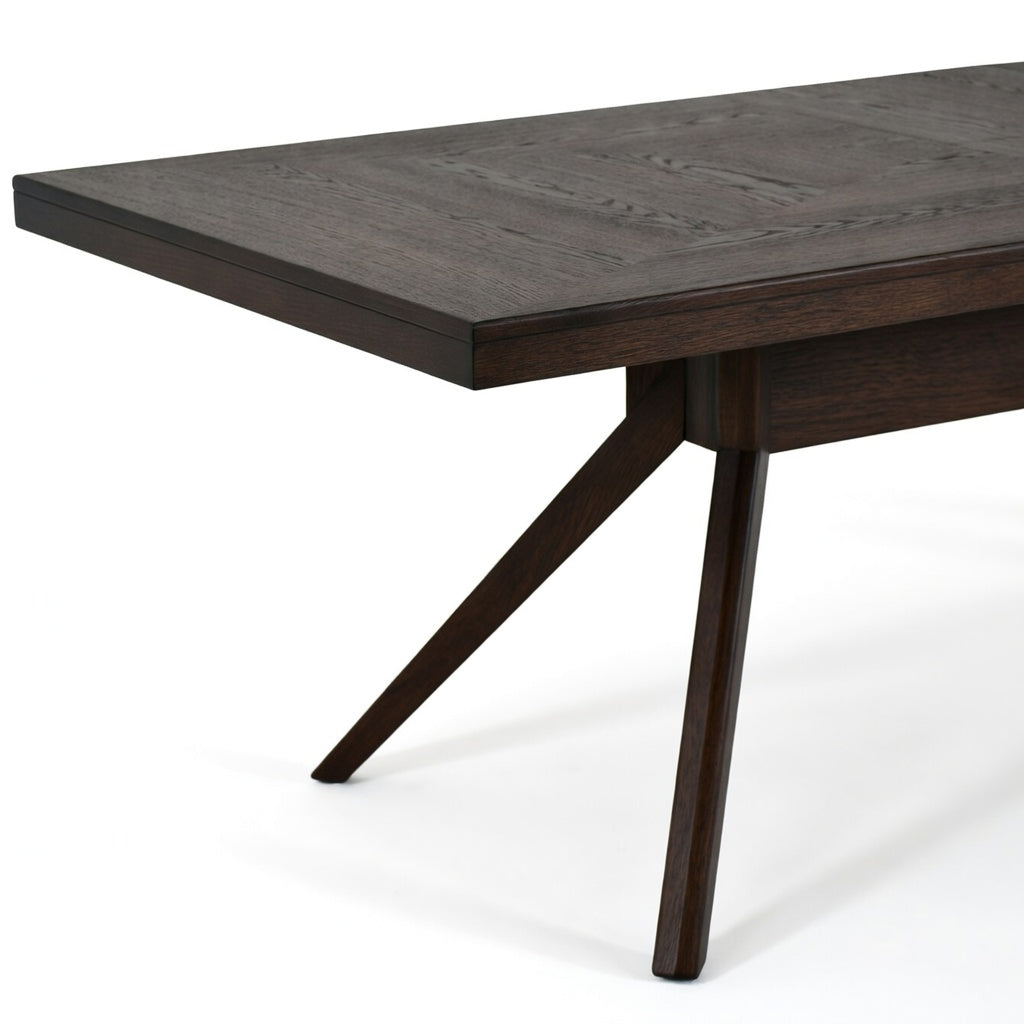 Koyu meşe yüzeyi, doğanın yalınlığını ve zarafetini modern çizgilerle buluştururken, dinamik ayak formu ve üç aşamalı açılabilir yapısı tam esneklik sunar.