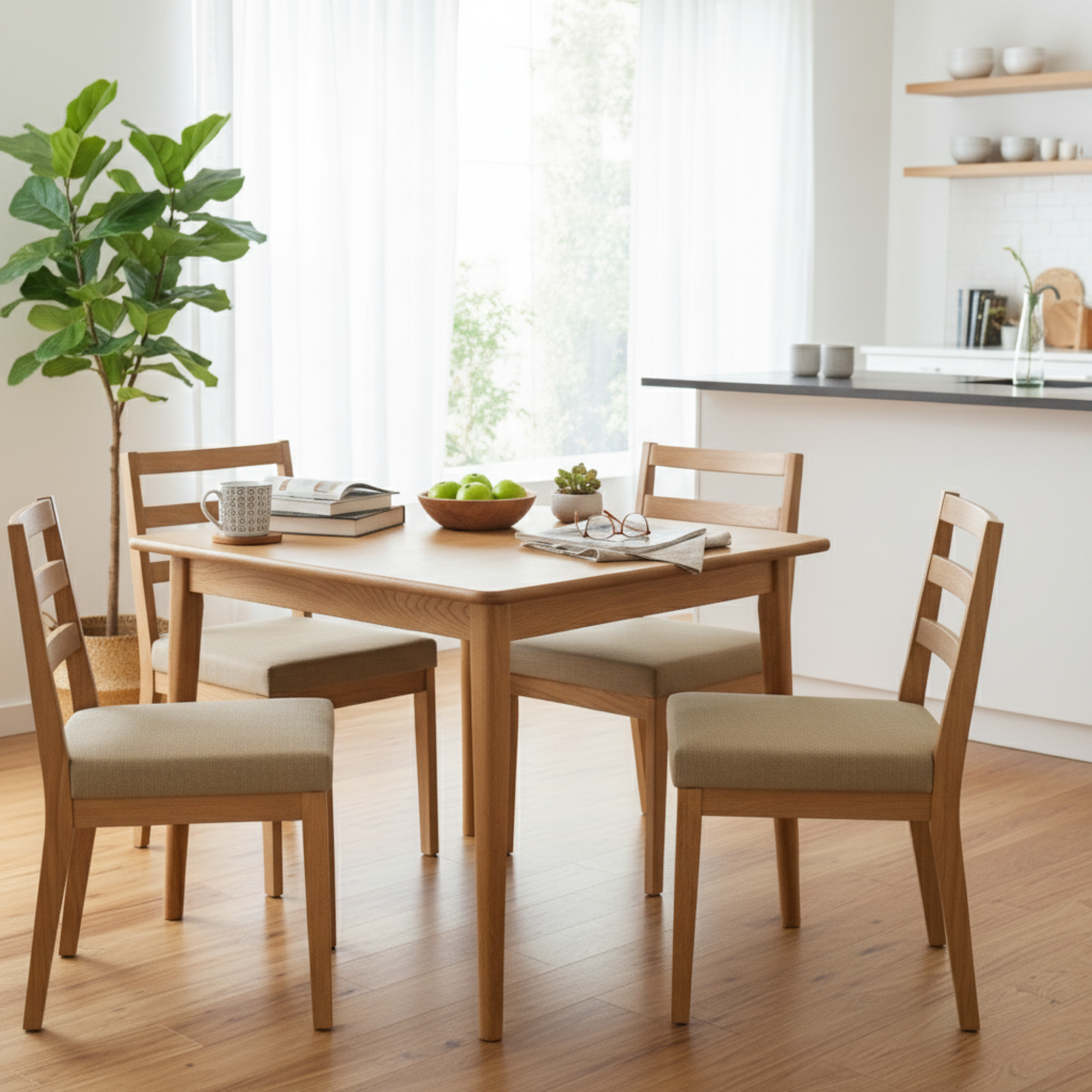 Henlow Sabit Kare Yemek Masası | Natürel Meşe