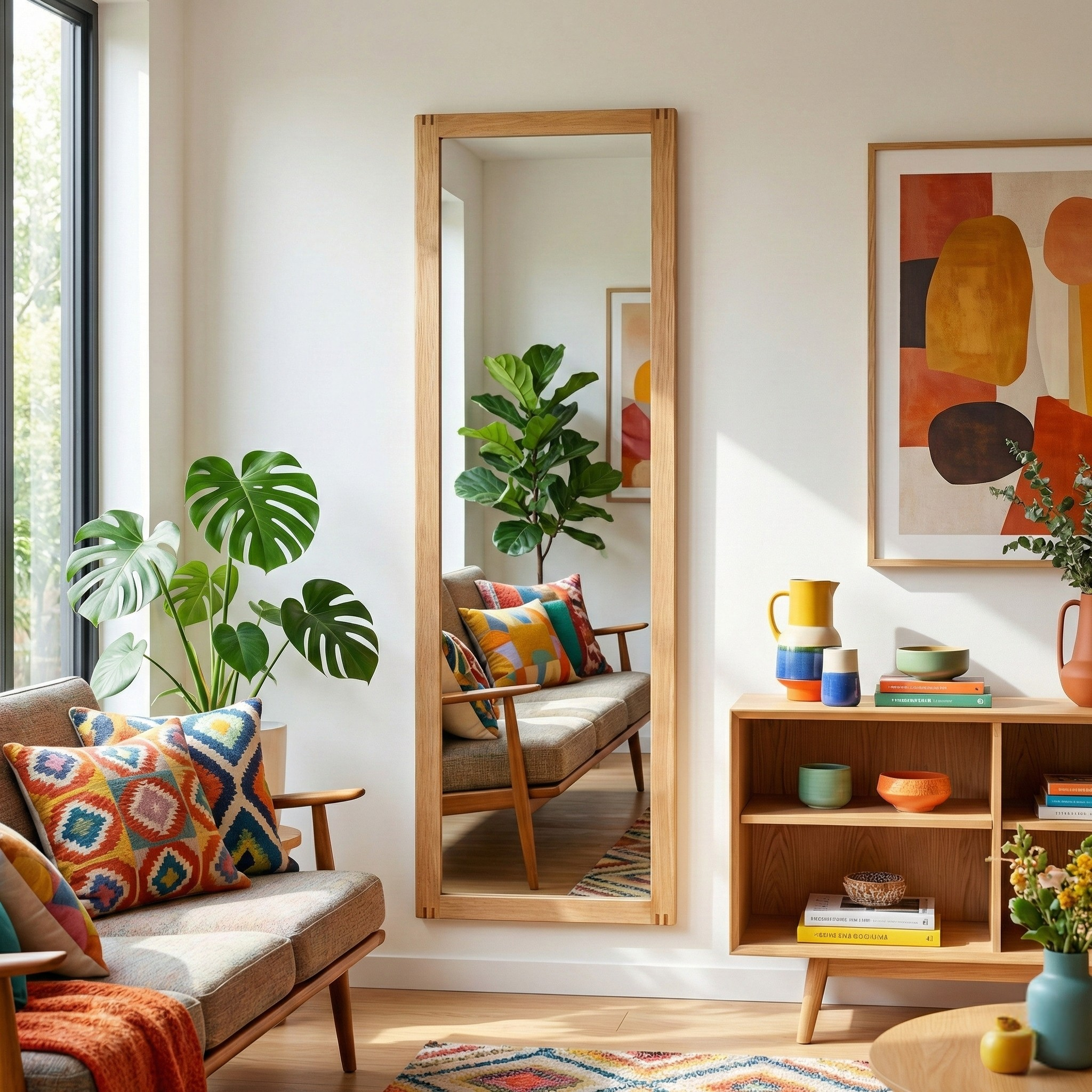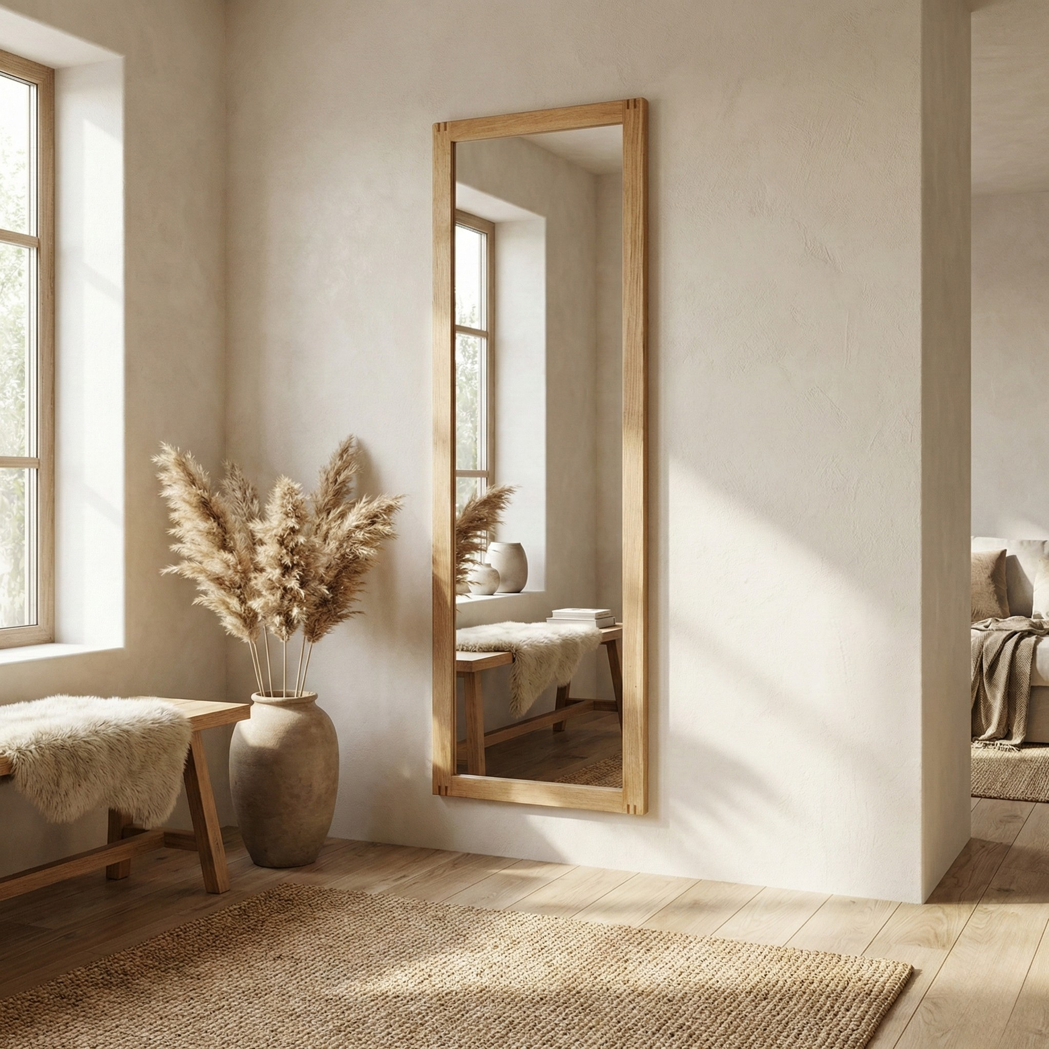 Modesto Boy Aynası, fonksiyonelliği doğal tasarımla buluşturan çok yönlü bir dekorasyon parçasıdır. Hem duvara asılarak hem de ayaklı–askılı şekilde zeminde kullanılabilir yapısı sayesinde yaşam alanınıza ve kullanım alışkanlıklarınıza kolayca uyum sağlar.