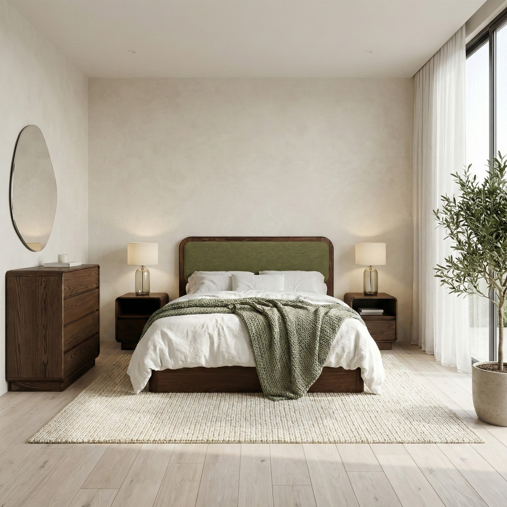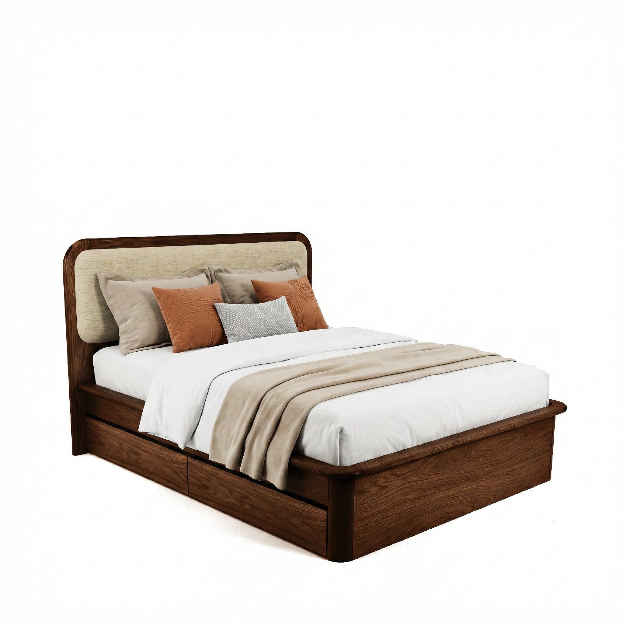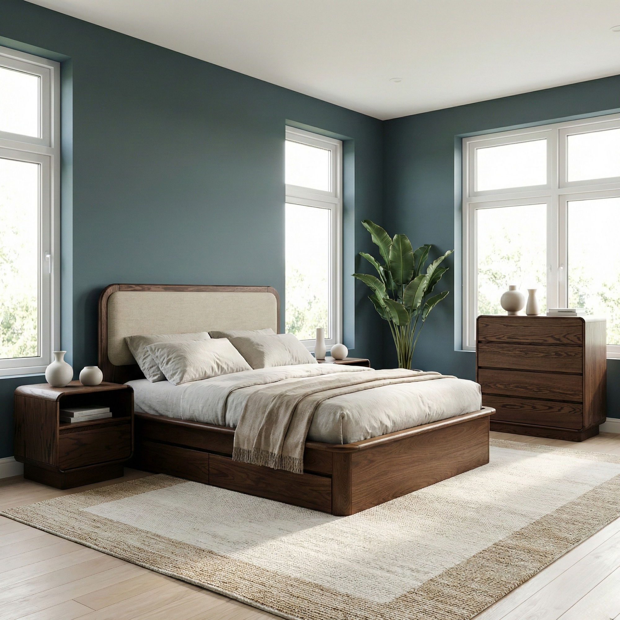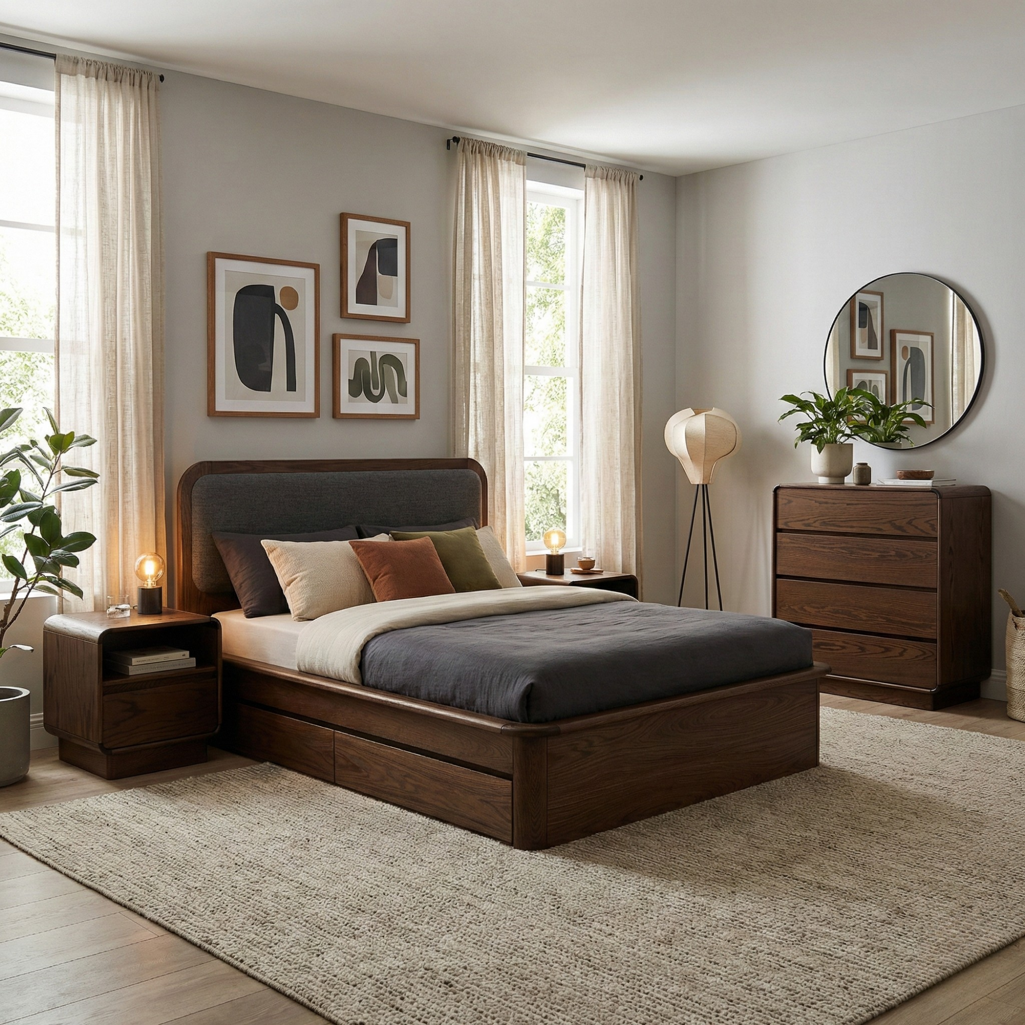 Modern estetiği fonksiyonel detaylarla buluşturarak yatak odalarına sofistike bir karakter kazandırır. Doğal ahşap dokusunun sıcaklığı, yumuşak hatlarla birleşerek mekânda zarif ve dengeli bir atmosfer oluşturur.