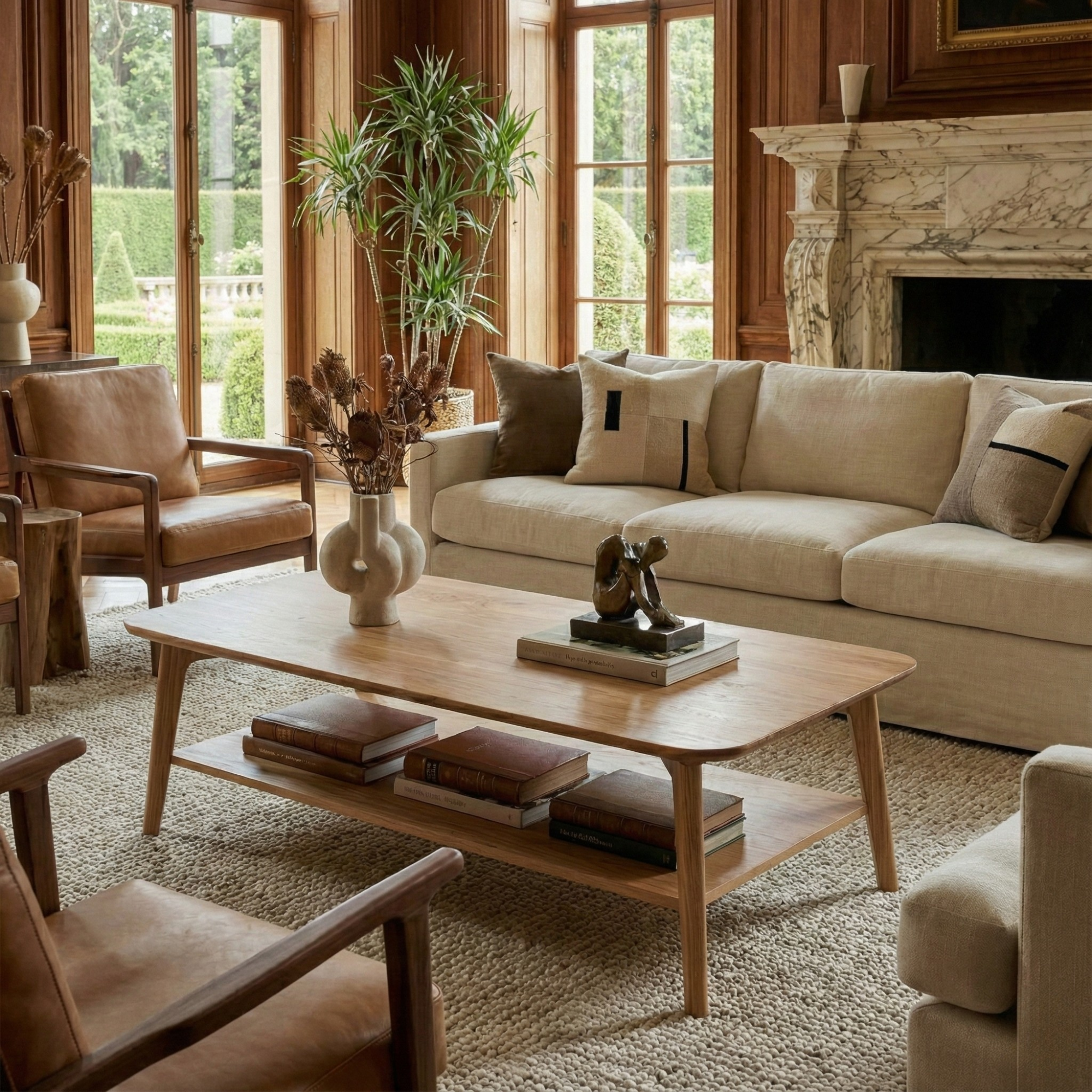 Shizen Kahve Masası, masif ahşabın sıcak dokusunu yalın ve zamansız bir tasarımla bir araya getirir. Yumuşak hatlara sahip formu ve dengeli ayak yapısı, mekâna sakin ve doğal bir karakter kazandırır.